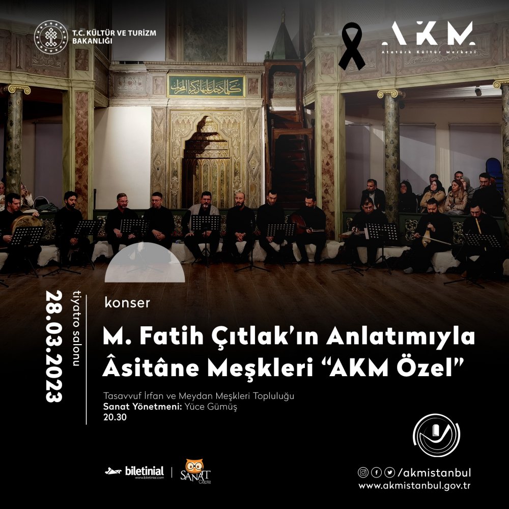 Tasavvuf İrfan ve Meydan Meşkleri Topluluğu, postnişin M. Fatih Çıtlak'ın anlatımıyla, medeniyet birikimini nesilden nesile aktaran meşk geleneğini Ramazan ayına özel bir konserle AKM seyircisiyle buluşturuyor.