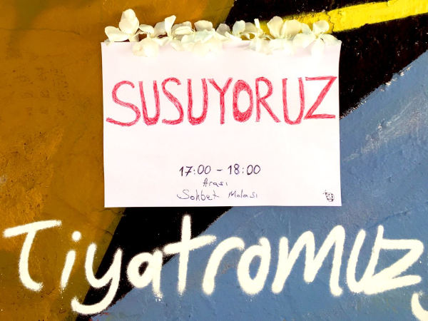 Tiyatro sanatçıları salgın öncesi ve sonrası artan sorunlarının hiçbir şekilde çözüme kavuşturulmaması karşısında “susmaya” karar verdi. İlk olarak Cenk Dost Verdi, Deniz Elmas ve Ulaş Kaya, “katlanılmazlığın eşiğini aştıklarını” söyleyerek susma eylemi başlattı. Her sabah saat 10.00’da Kadıköy’deki Moda Sahnesi’nin önünde buluşan tiyatrocular, saat 20.00’ye kadar susuyorlar. Bugün eylemlerinin altıncı günündeler. Sadece saat 17.00-18.00 arasında sohbet molası veren tiyatrocular, meslektaşları ve kendilerine destek vermeye gelen kişilerin sorularını yanıtlayarak, sorunlarını paylaşıyorlar.