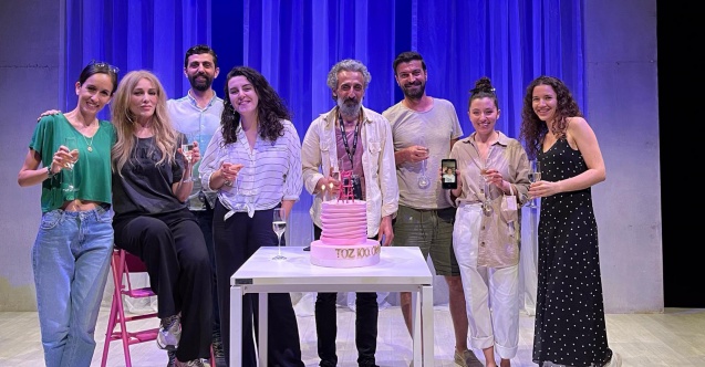 Prömiyerini de Alan Kadıköy’de yapan, 100. oyunuyla da aynı sahnede izleyicisiyle buluşan Toz ekibi bu özel günü hep beraber pasta keserek kutladı.