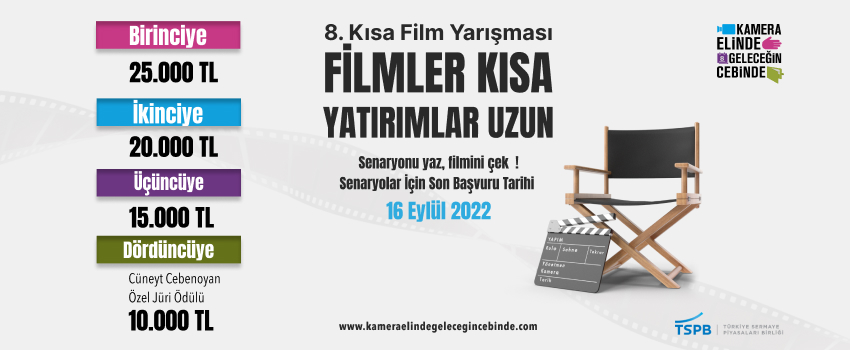 Türkiye Sermaye Piyasaları Birliği’nin (TSPB) 2014 yılından bu yana başarıyla yürüttüğü ve artık gelenekselleşen “Kamera Elinde Geleceğin Cebinde” Kısa Film Yarışması’nın sekizincisine başvurular 23 Haziran’da başlıyor. TSPB’nin sinemanın toplumsal dönüşümdeki gücüyle ülkede finansal okuryazarlık ve sermaye piyasalarına yatırım konusunda bilgi ve farkındalığı artırmak amacıyla düzenlediği ve her yıl yeni bir temayla yürüttüğü kısa film yarışması bu yıl, “Sermaye Piyasalarında Yatırımcı Olmak” teması ve “Filmler Kısa, Yatırımlar Uzun…” sloganıyla başlıyor.