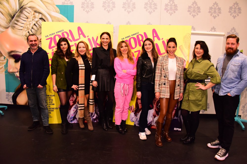 Yapımını BKM’nin üstlendiği distopik komedi oyunu ‘Zorla Güzellik Olmaz’ın oyuncuları basının karşısına geçti ve sorularını yanıtladı. Kadrosunda ve ekibinde birbirinden yetenekli isimlerin bir araya geldiği oyun kadın hakları ve cinsiyet eşitsizliğini ince bir mizah ile eğlenceli bir dille seyirciye sunuyor.