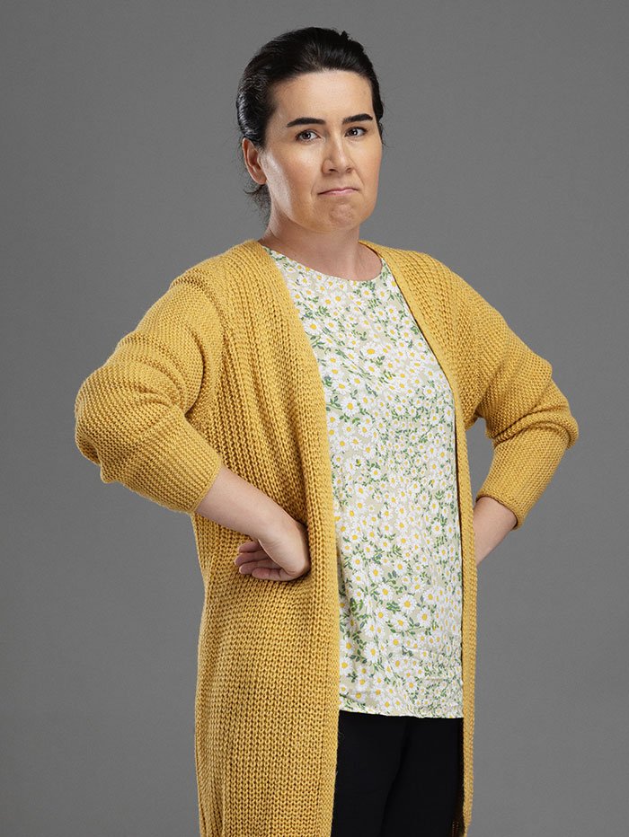 İlk bakışta kendini ev işlerine vakfetmiş, kocasının gölgesinde sessiz sakin yaşayan bir kadın gibi duruyor. Ama hayatta kim ilk bakışta anlaşılabilmiş ki...