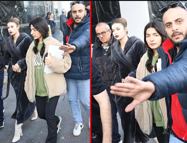 Kendisine eşlik eden görevlilerin görüntü alınmasını engellemeye çalıştığı oyuncu, hızlı adımlarla yakındaki bir binaya girerken; bu sırada basın mensupları ile set çalışanları arasında gerginlik yaşandı.