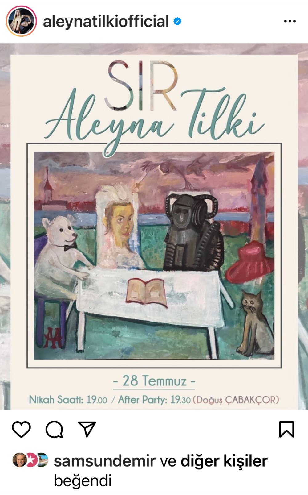 Aleyna Tilki yeni şarkısı ‘Sır’ı sevenleriyle buluşturmak üzereyken sosyal medya hesabından "Ayın 28’inde evleniyorum. 30’unda da klibimiz çıkacak. Buda davetiyem. 28’inde düğünümü instagramdan canlı izleyebilirsiniz…" diye yaptığı paylaşımla yüzlerce mesaj aldı.