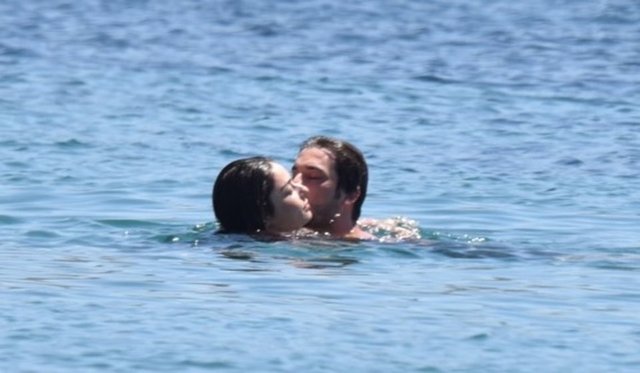 Denizde romantik anlar yaşayan ünlü çift, birbirlerini öpücüklere boğdu. Ayça Ayşin Turan, bir ara Navruz’un sırtına doğru çıkarak yüzdü. Turan'dan önce denizden çıkan Alp Navruz ise sevgilisini yüzerken izlemeyi tercih etti.