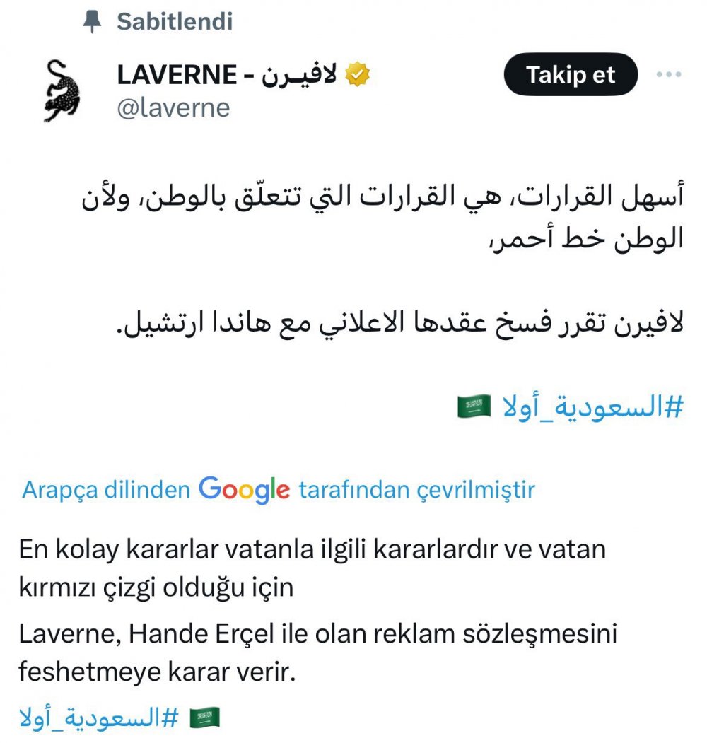 Birçok ünü isim olanlara tepki olarak paylaşım yaptı. Hande Erçel de o isimlerden biri oldu. Ancak Erçel'in Atatürk fotoğrafı paylaşımı sonrası parfüm markası Laverne, oyuncu ile olan reklam anlaşmasına son verdi.