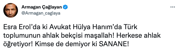 Hülya Kuran’ı eleştiren bir açıklamada bulunan kendisi de avukat olan Çağlayan, yaptığı paylaşımda "Esra Erol’daki Avukat Hülya Hanım da Türk toplumunun ahlak bekçisi maşallah! Herkese ahlak öğretiyor! Kimse de demiyor ki SANANE!" ifadelerine yer verdi.