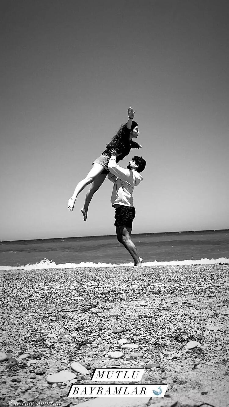 Alp Navruz'un sevgilisi Ayça Ayşin Turan'ı havalara uçurduğu fotoğrafa, "İyi bayramlar" notunu ekledi.