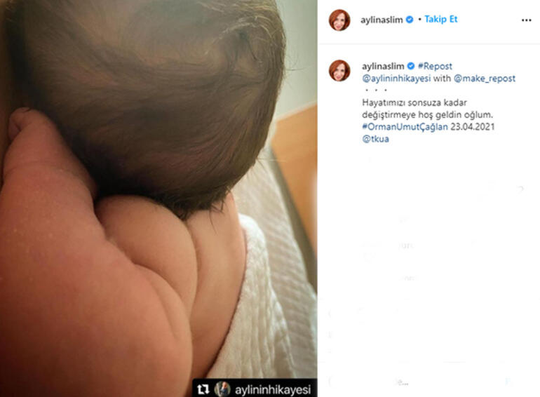 Altı ay önce flüt sanatçısı Utku Vargı ile ani bir karar ile 14 Kasım'da Antalya'da dünyaevine giren Aylin Aslım, doğum yaptı. İlk kez anne olan şarkıcı, müjdeli haberi sosyal medya hesabından duyurdu.