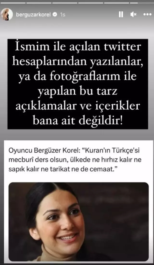 Açıklama sosyal medyada hızla yayıldı ve tepki çekti. Bunun üzerine ünlü oyuncu Bergüzar Korel hemen bir paylaşımda bulundu.