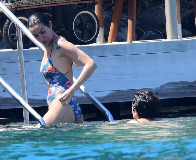 Bir etkinlik için bir araya gelen ikili, bir süre sohbet etti. Denize olan düşkünlüğü ile bilinen Birce Akalay, ardından kendisini Bodrum'un serin sularına bıraktı.