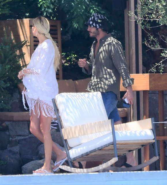 Aşıklar, Cennet Koyu'ndaki bir otelin iskelesinde objektiflere yansıdı. Kısa bir süre iskelede oturan sevgililer, denize girmeyi tercih etmeyerek, soluğu odalarında aldı.