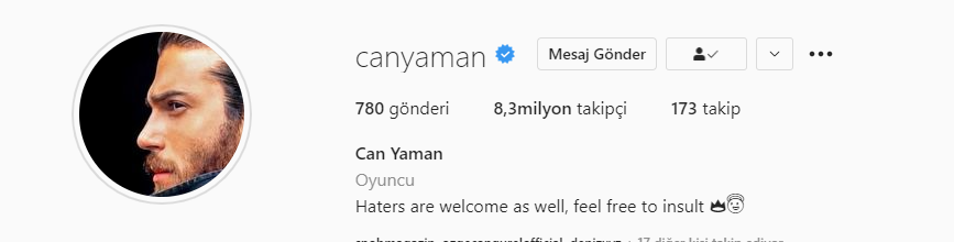 Yaman Instagran profiline "Nefret edenler de hoş karşılanır, hakaret etmekten çekinmeyin" yazdı.