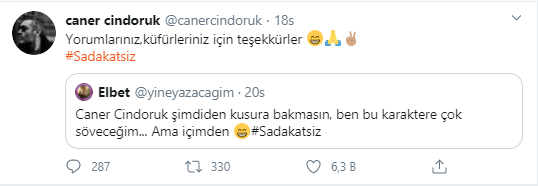 Dizide eşini aldatan Volkan karakterini canlandıran Caner Cindoruk kendisine küfür edenlere esprili bir şekilde cevap vermeyi seçti.