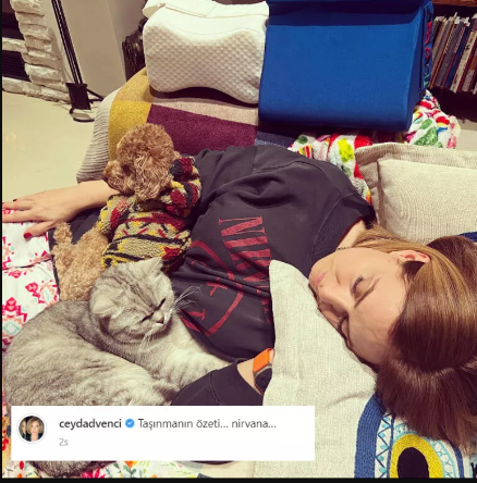 Sonra da kedisi ve köpeğiyle yer aldığı fotoğrafı paylaşarak taşındığını duyurdu.