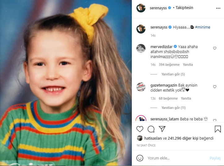 Yakın zamanda Şahmeran dizisinin çekimlerine başlayacak olan Serenay Sarıkaya, eski günleri yad etti ve sosyal medyadan çocukluk fotoğrafını yayınladı.