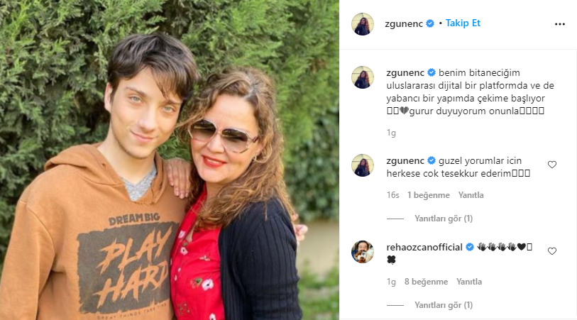 Günenç, Alp Eren Khamis'in uluslararası dijital bir platform için yabancı bir yapımda yer alacağını duyurdu ve "Gurur duyuyorum onunla" dedi.