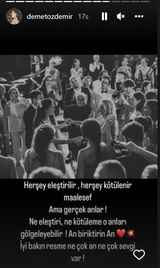 Demet Özdemir'in, "Her şey eleştirilir, her şey kötülenir maalesef ama gerçek anlar! Ne eleştiri, ne kötüleme o anları gölgeleyebilir! An biriktirin, an... İyi bakın resime! Ne çok an, ne çok sevgi var..." notunu düştüğü gönderi takipçilerinden oldukça ilgi gördü.
