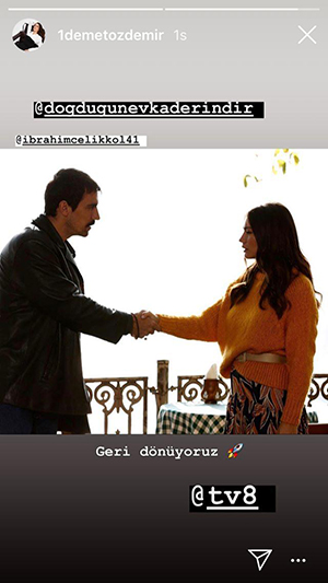 Bir süredir tatil yapan Demet Özdemir Instagram hesabından yaptığı paylaşım ile setlere döneceklerini açıkladı. Diziden bir kareyi paylaşan oyuncu “Geri dönüyoruz” notunu düştü.
