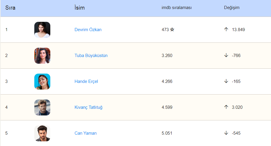 Dizi ve film aktörlerinin listelendiği IMDb Starmetre'nin bu haftaki verileri yayınlandı. Liste'de yer alan Türk oyuncular arasında büyük bir çekişme yaşanırken zirvenin sahibi şaşırtan bir isim oldu.