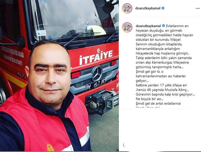 Oyuncu Doğa Rutkay Kamal, Adana'da nöbet sırasında kalp krizi geçirerek hayatını kaybeden 46 yaşındaki itfaiye eri Mustafa Kılınç'ın fotoğrafını paylaştı.