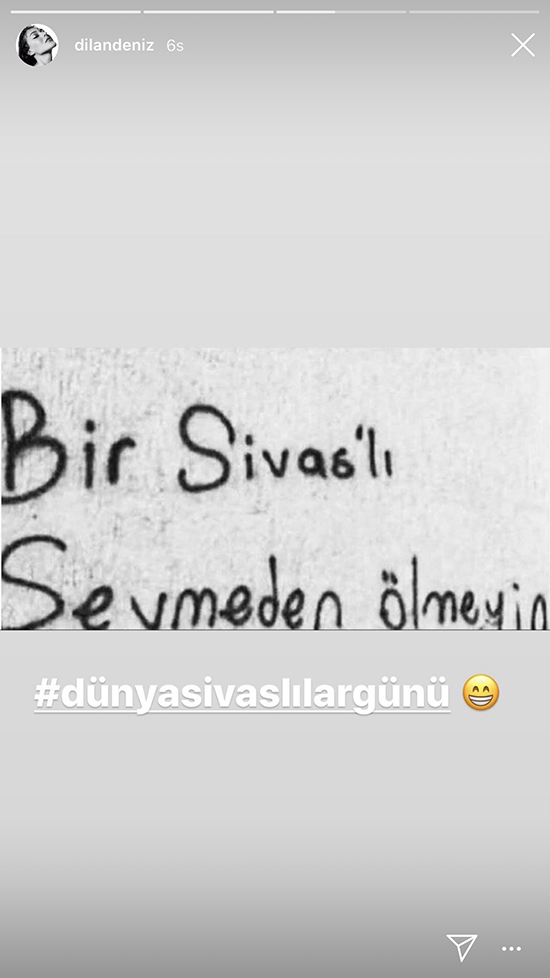 Sivaslı olan Dilan Deniz Çiçek gönderisinde “Bir Sivaslı sevmeden ölmeyin” notunu ekledi.