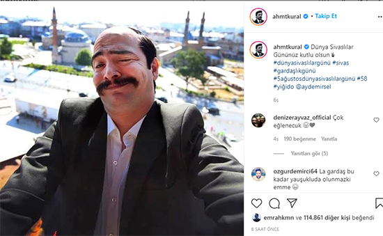 Sivaslı olmayan Ahmet Kural sosyal medyadan paylaştığı fotoğrafın altına “Dünya Sivaslılar Gününüz kutlu olsun” açıklamasını düştü.