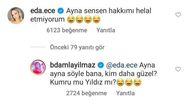 Eda Ece, Biran Damla Yılmaz'a, ''Ayna sensen hakkımı helal etmiyorum'' yorumunda bulundu. Biran Damla Yılmaz'dan ise ''Ayna ayna, söyle bana! Kim daha güzel? Kumru mu, Yıldız mı?'' yanıtını verdi.