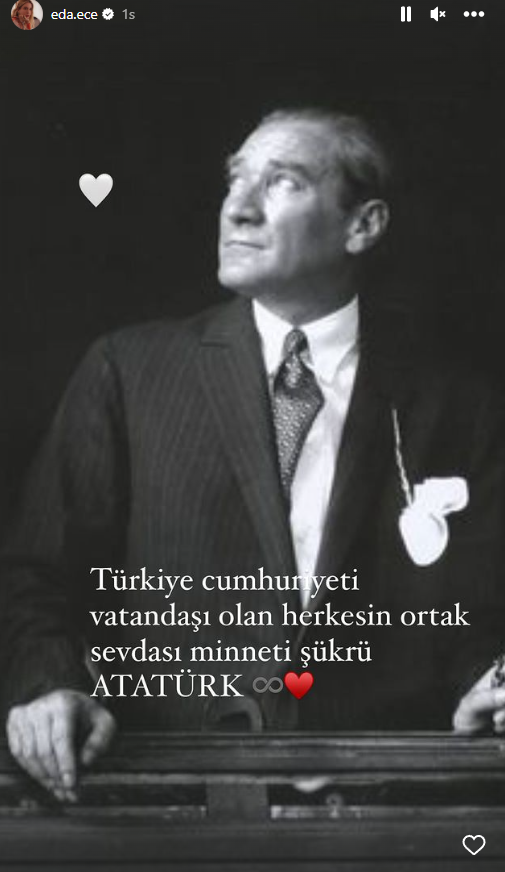 Platformun marka elçisi olan Ede Ece sosyal medya hesabından paylaşım yaptı. Oyuncu, Mustafa Kemal Atatürk'ün fotoğrafını paylaşıp "Türkiye Cumhuriyeti vatandaşı olan herkesin ortak sevdası, minneti, şükrü Atatürk" notunu düştü.