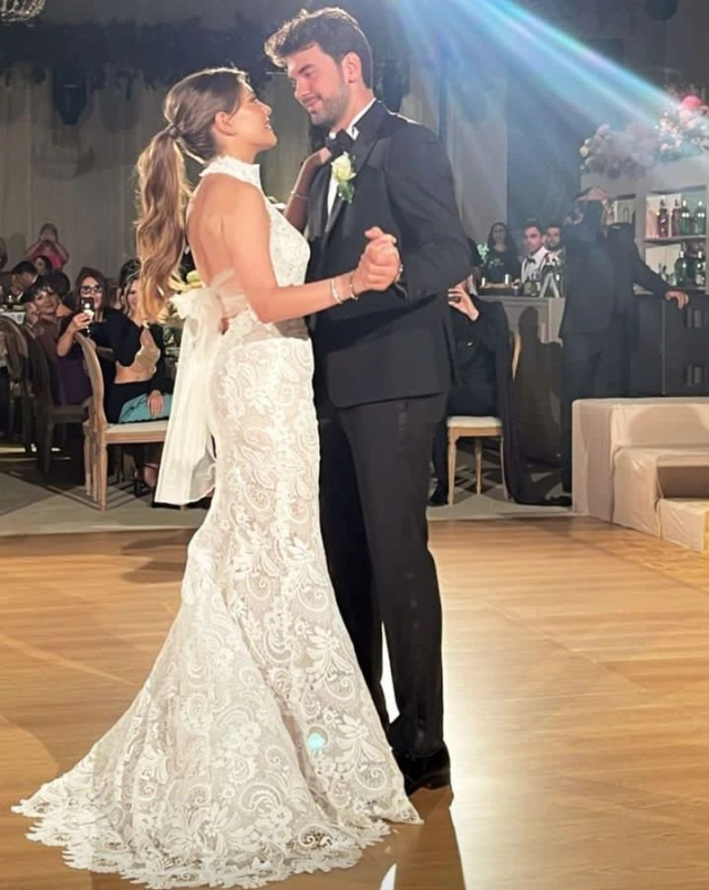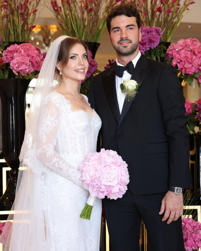 Uzun süredir düğünü için hazırlık yapan Eda Ece, nikah töreni esnasında uzun duvak detaylı dantel bir gelinlik tercih etti. Toz pembe bir gelin çiçeği olan oyuncu, ikinci gelinliğini de bu sefer boğazdan bağlama detaylı uzun bir gelinlikten yana yaptı. Güzel oyuncu düğünün sonunda ise etek ve bluzdan oluşan bir kombin yaptı.