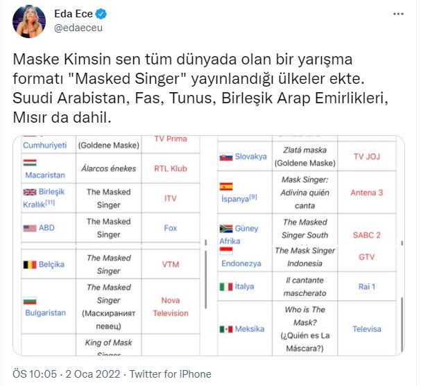 Maske Kimsin Sen yarışması ile ilgili sosyal medyada yer alan, özellikle de maskelerin çok korkutucu olduğu, pagan figürleri içerdiği şeklindeki eleştiriler yoğun bir şekilde yapıldı. Eleştirilerin ardından Eda Ece’nin twitter hesabından yaptığı paylaşım da dikkatleri çekti.