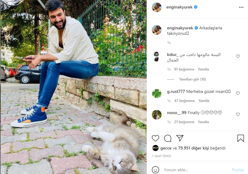 Oyuncu son olarak bir kediyle birlikte fotoğrafını paylaştı. “Arkadaşlarla takılıyoruz...” notunu yazdığı gönderisine kısa sürede çok sayıda beğeni ve yorum yapıldı.