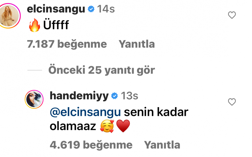 Sangu, Erçel'in fotoğrafına "Ufff" yorumu yaptı. Erçel ise karşılık olarak "Senin kadar olamaz" dedi.
