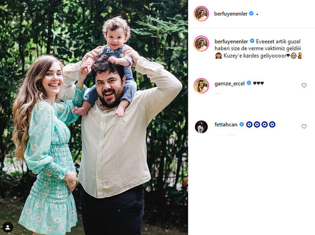 Berfu Yenenler paylaştığı gönderide, ‘’Evet artık güzel haberi size de verme vaktimiz geldi! Kuzey’e kardeş geliyor" ifadelerini kullandı.