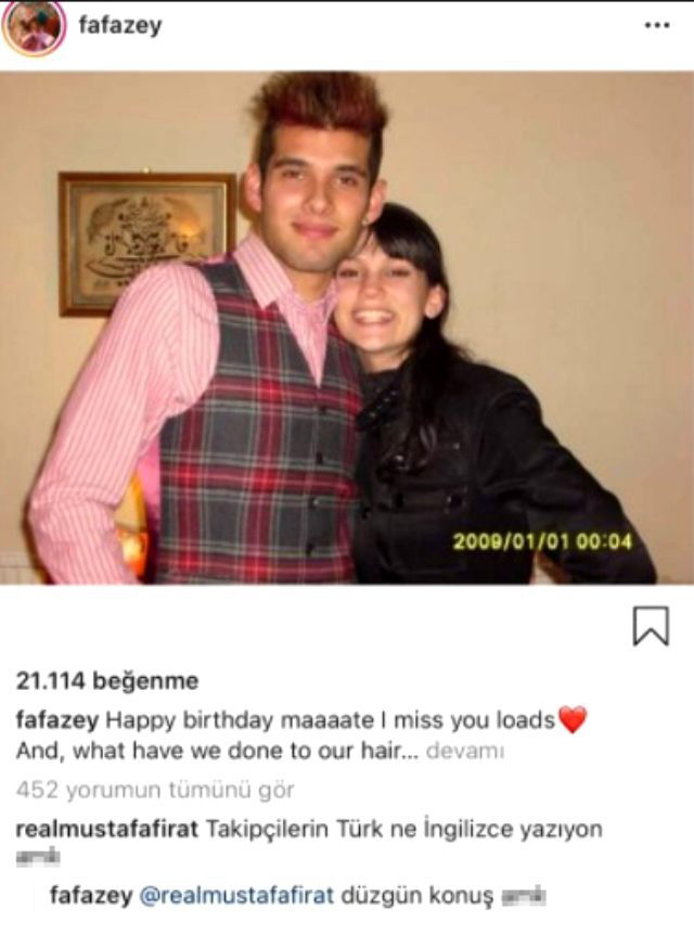 Bunun üzerine de bir yorum yapan takipçisi "Takipçilerin Türk ne İngilizce yazıyorsun a.." diyerek küfür etti. Takipçisinin küfürlü paylaşımına oyuncu "Düzgün konuş a.." yanıtını verdi.