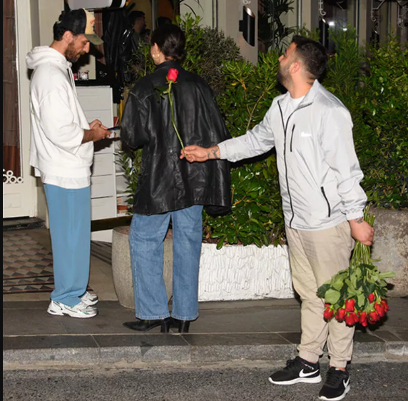 Bebek’te çiçekçilerin çiçek uzatmasına gülümseyerek karşılık veren Çelik, ardından gizemli kız arkadaşı ile mekana geri girdi.