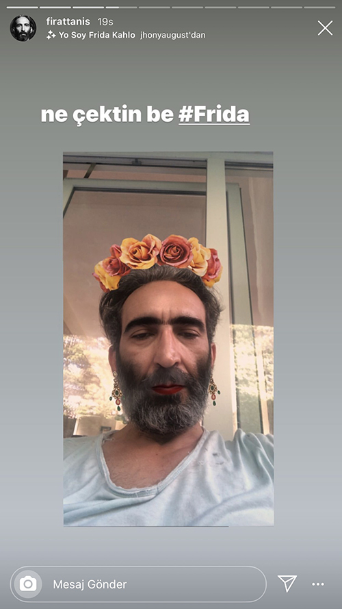Sanatçı dün gülümseten paylaşımlardan birini hesabının hikayeler kısmından paylaştı. Bir uygulama kullanalarak, başındaki taç, küpeleri ve rujuyla Meksikalı ikonik ressam Frida Kahlo'ya dönüşen Tanış, paylaşımına "Ne çektin be Frida" notunu ekledi.