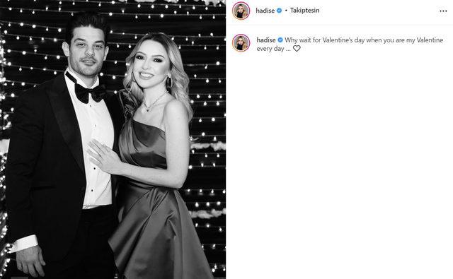 Yüzüğün fiyatı, Mehmet Dinçerler'in hesabının çalınması derken sık sık adlarından söz ettiren çift, şimdi ise Hadise'nin paylaşımıyla gündem oldu. Sevgililer Günü'nü bekleyemeyen şarkıcı, sosyal medya hesabında romantik bir paylaşımda bulundu.