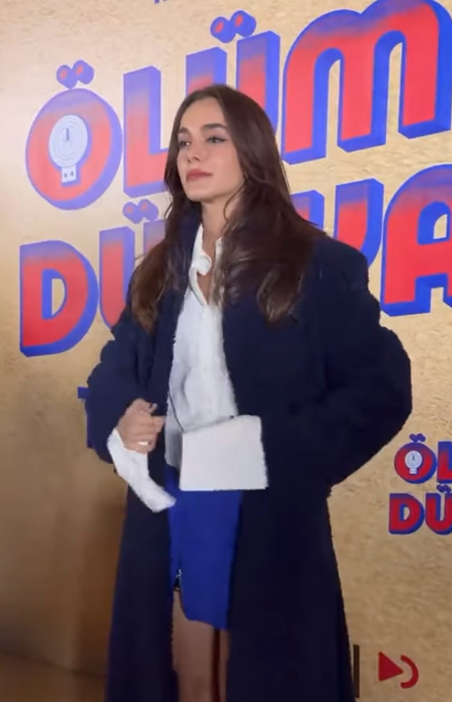 Mini etek ve beyaz gömlek kombiniyle geceye katılan ünlü oyuncu kombinini lacivert kabanı ile tamamladı. Sancaktutan'ın gala tarzı takipçilerinden tam not alırken poz verdiği anlar sosyal medyanın diline düştü.