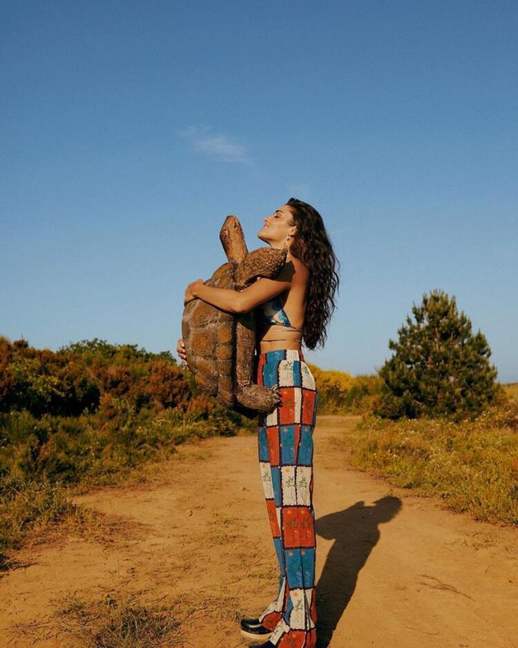 Hande Erçel son olarak Disney Plus'ın lansmanına katılarak güzelliğiyle hayran bırakmıştı. Instagram'da en çok takipçiye sahip Türk kadın oyuncu olan Erçel, yüzü olduğu bir marka için kamera karşısına geçti. Hande Erçel bu kez dev kaplumbağa ile poz verdi.