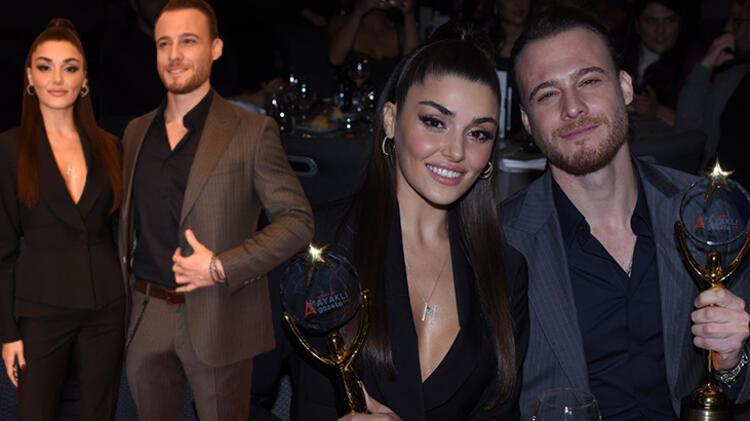 Kamera karşısına geçen ikili, "Ödül aldığımız için çok mutluyuz, 58 hafta emek verdik. Aldığımız ödüllerle de buna değdiğini hissetmek çok güzel" şeklinde konuştu.