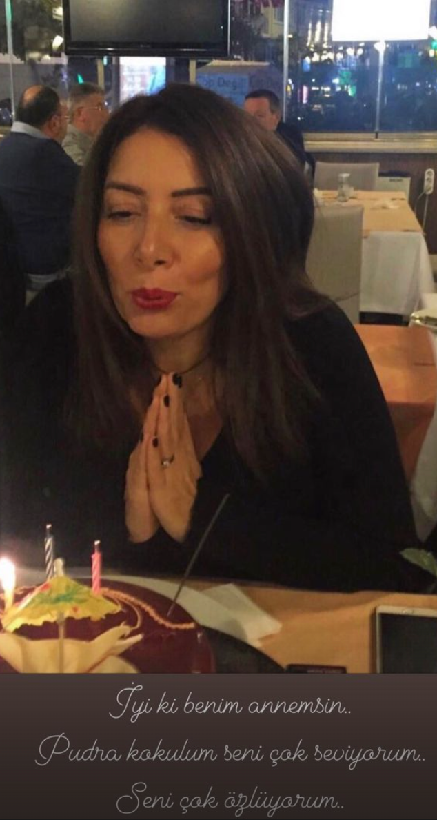 Ünlü oyuncu, annesinin doğum günü pastasıyla dilek dilerken çekilen fotoğrafına şu notu düştü: "İyi ki benim annemsin. Pudra kokulum seni çok seviyorum. Seni çok özlüyorum."
