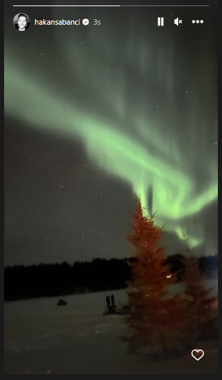 Çiçeği burnunda çift bu kez de kuzey ışıklarını görmeye Finlandiya’ya gitti. Sabancı sosyal medya hesabından paylaşımda da bulundu.
