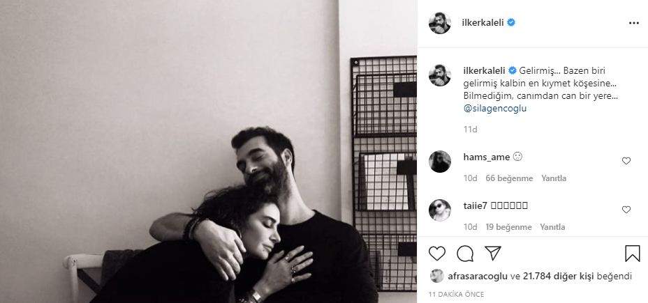Çiftten ilk fotoğraf geldi. İlker Kaleli Instagram hesabından birlikte bir fotoğraf paylaşarak "Gelirmiş... Bazen biri gelirmiş kalbin en kıymet köşesine... Bilmediğim, canımdan can bir yere..." notunu düştü.