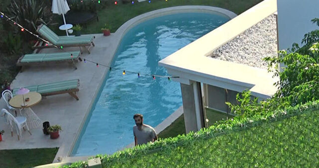 Evden hiç çıkmayan ve gözlerden uzak yaşamaya çalışan çiftten İlker Kaleli, havuz başında telefonla konuşurken görüntülendi.