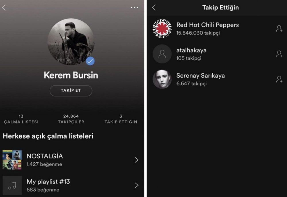 Eski sevgilisine dair izleri yok eden Bursin'in bir paltformu unuttuğu gözlerden kaçmadı. Oyuncu müzik ugulaması Spotify'da Serenay Sarıkaya'yı hala takip ediyor.