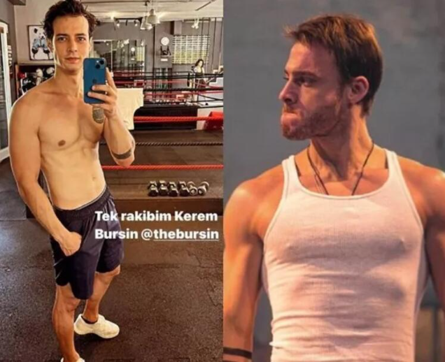 Menajerlik şirketine girerken objektiflere takılan ünlü isim, önceki günlerde paylaştığı kaslı vücudunun fotoğrafına yazdığı "Tek rakibim Kerem Bürsin" notuna açıklık getirdi.