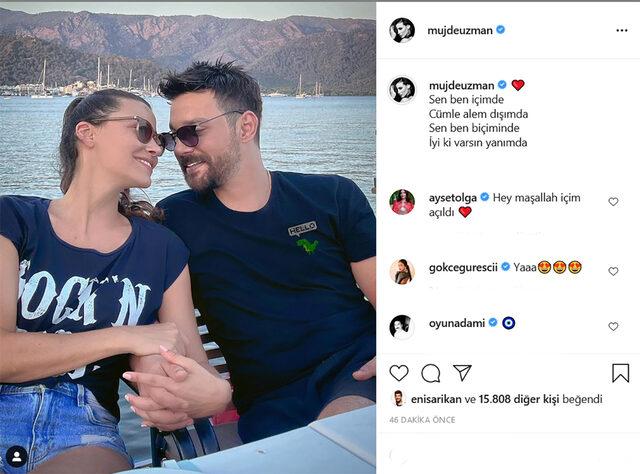 Ünlü çift birlikte tatile çıktı. Müjde Uzman, sevgilisiyle teknede çekilen romantik bir fotoğrafı "Sen ben içimde. Cümle alem dışımda. Sen ben biçiminde. İyi ki varsın yanımda" notuyla Instagram'dan paylaştı.