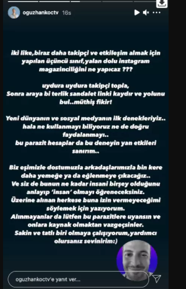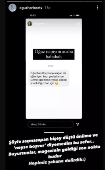 Koç, kendisi hakkında Demet Özdemir'i aldattığını iddia eden bir yoruma sessiz kalamadı. "İki like ve takipçi için yapılan üçüncü sınıf yalan dolu instagram magazinciliğini ne yapacağız?" diyen ünlü isim "Yeni dünyanın, sosyal medyanın ilk denekleriyiz" ifadelerini kullandı.