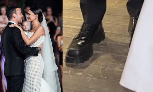 Oğuzhan Koç'un geceye düğünde giydiği ayakkabının bir benzerini giyerek gelmesi dikkatlerden kaçmadı.